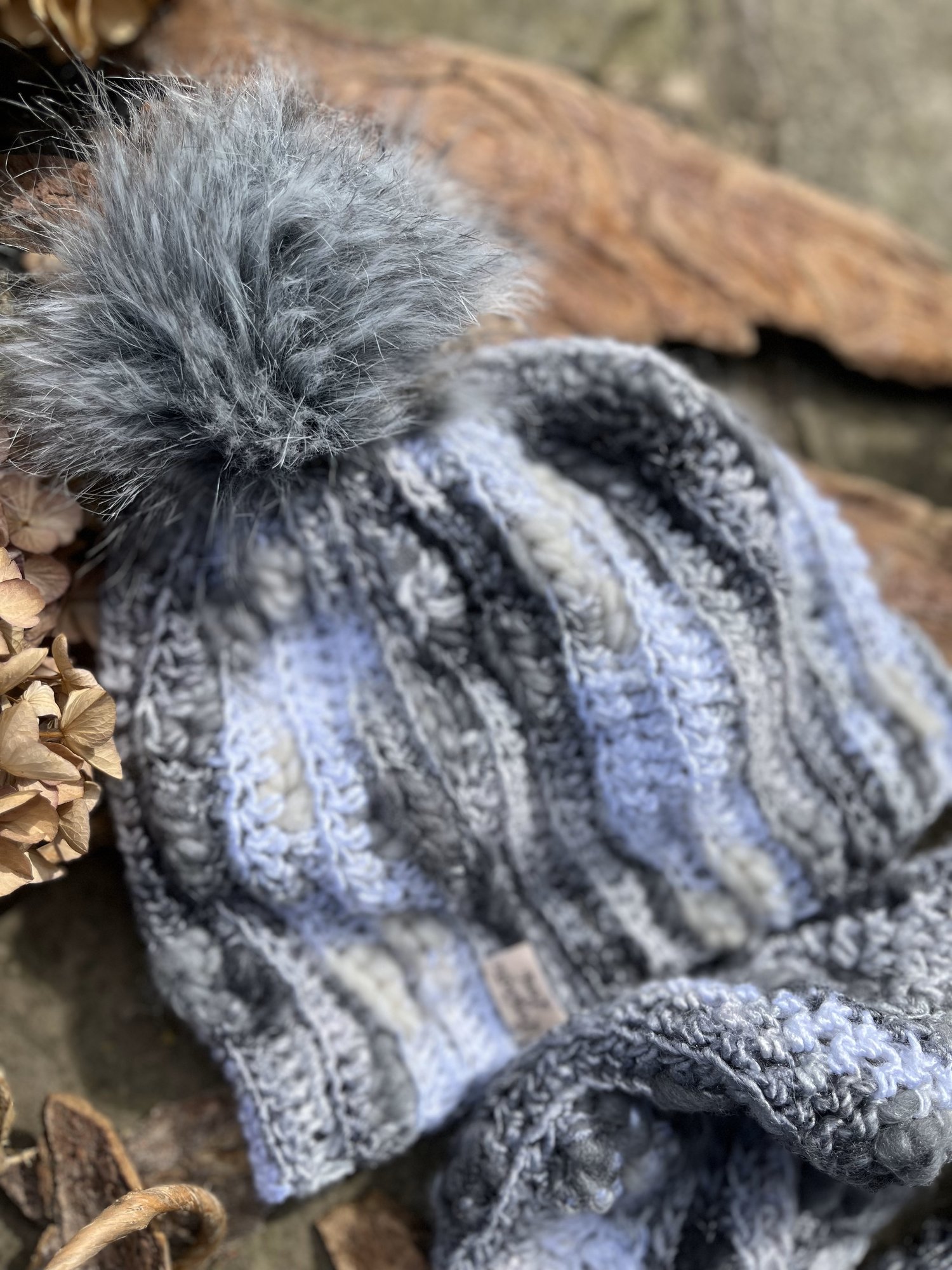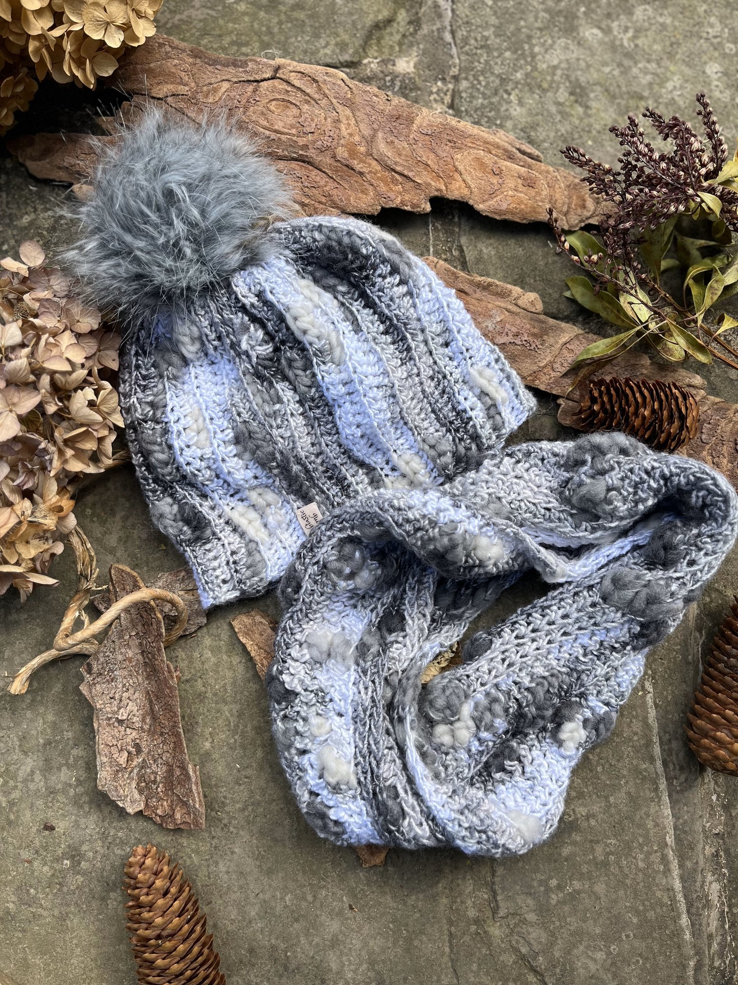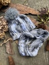 The Stormy Twist Set combines elegant neutrals with a modern design. This stylish set features a grey, black, and white hat with a removable pom and a matching twisted infinity cowl. The soft colour palette is perfect for pairing with any outfit, while the removable pom adds a fun, customisable touch. Both pieces are machine washable, making this set as practical as it is cosy—an essential addition to your winter wardrobe.