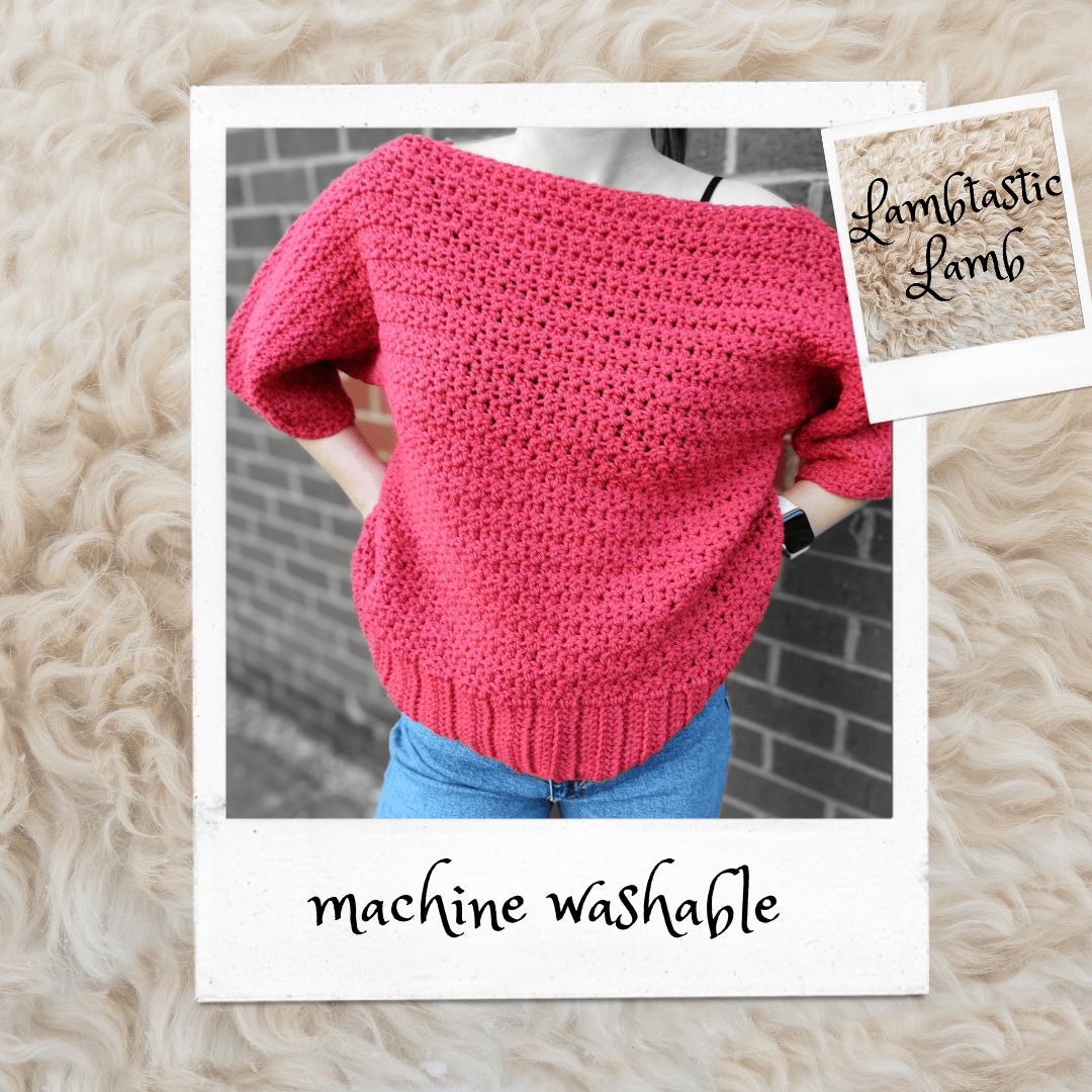 The washable yarn used in the Lambtastic Lamb Crochet Weekend Jumper ensures easy care and maintenance. Simply toss it in the washing machine dry flat and reshape , and it will be ready to wear again in no time.