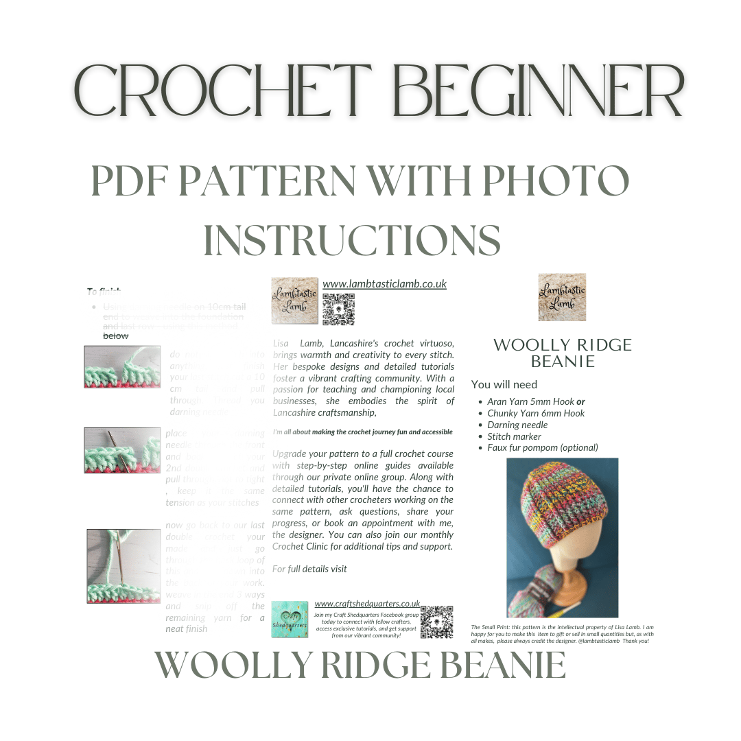 The Beginner Ribbed Beanie is designed for crochet newcomers and is constructed from the bottom up, ensuring a snug and stylish fit. This pattern uses simple yet effective double crochet post stitches, which create a ribbed texture. The beanie is shaped beautifully with easy decreases at the top, giving it a clean, polished look. You can easily adjust the sizing to fit perfectly, making it a versatile project for any head size. The pattern is compatible with both Aran and chunky yarn, so you can customise the beanie to suit your personal style and warmth preference.