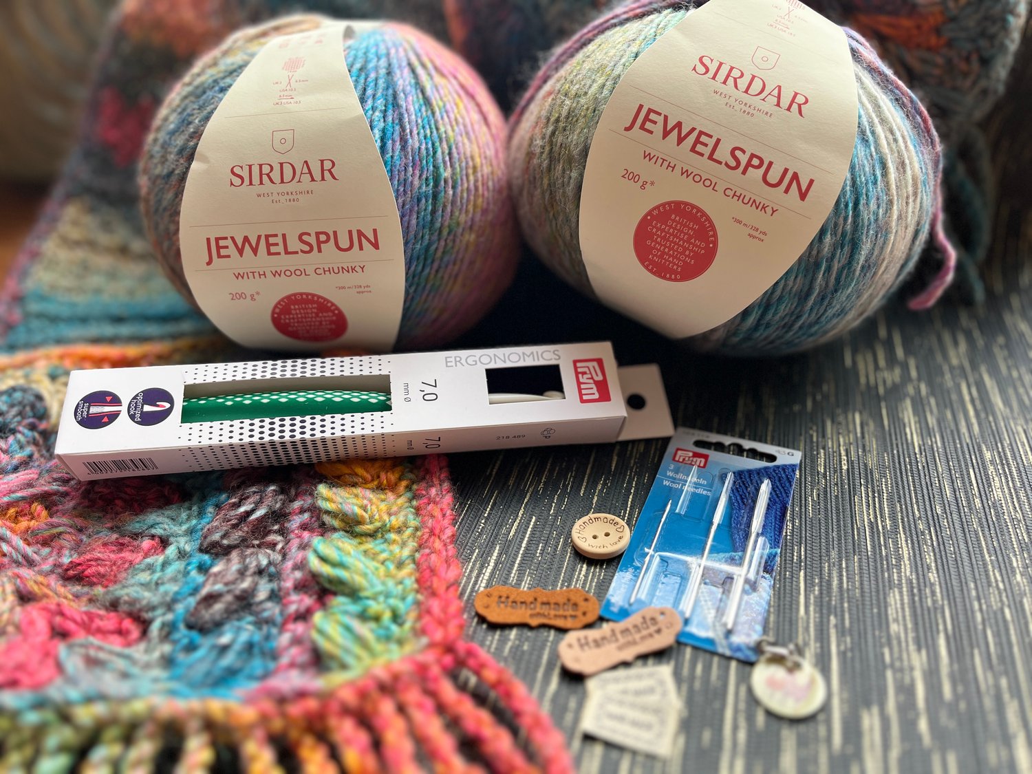 🧶 400g of Sirdar Jewelspun Chunky yarn – A beautifully soft and colour-rich yarn to bring your scarf to life.