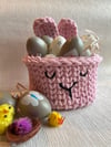 - Pink Bunny Basket – Featuring cute floppy ears and a sweet bunny face, this soft pink basket is a delightful Easter treat.