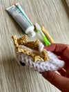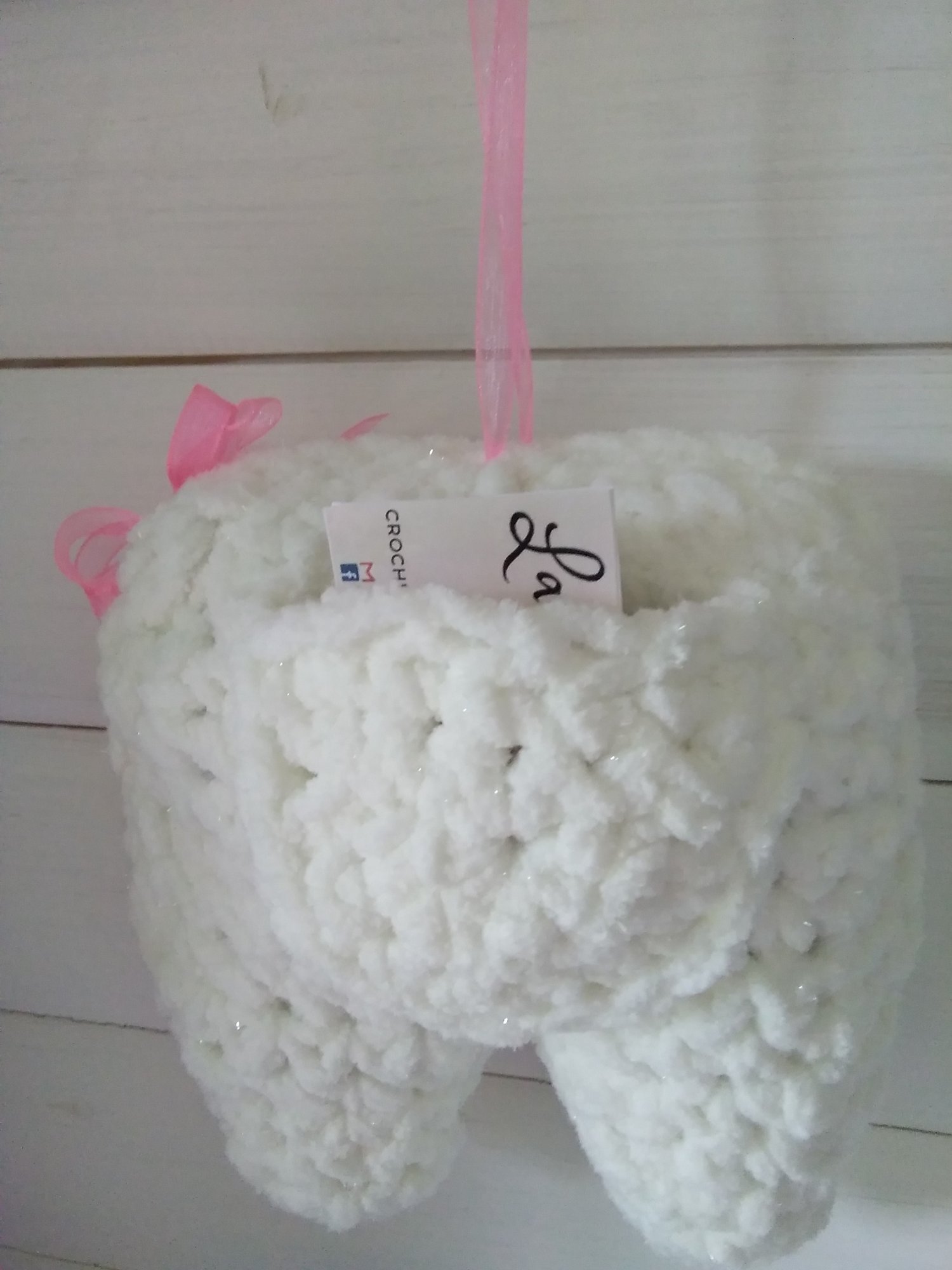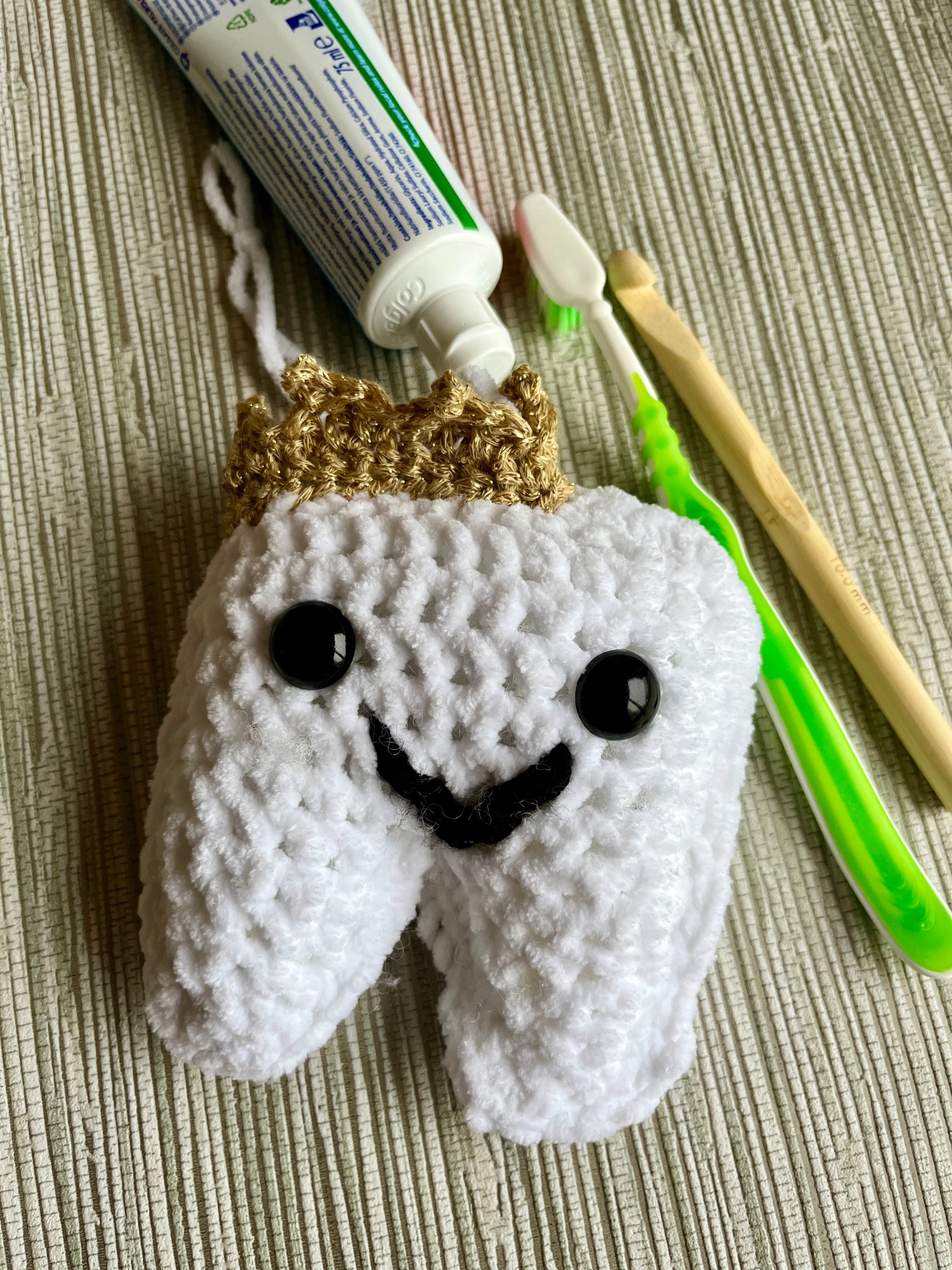 Bring a touch of magic to your child’s tooth fairy traditions with this adorable handmade crochet Tooth Fairy Pillow! Shaped like a charming tooth and topped with a golden crown or bow, it’s designed to hang conveniently on a door handle, making it easy for the fairy to visit without disturbing your little one.