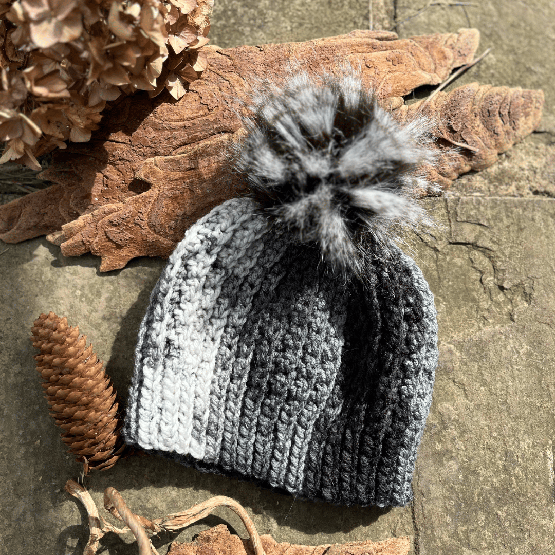 The Winter Eclipse Beanie combines bold contrasts and cosy comfort. Made from soft, chunky yarn in grey, black, and white, this beanie keeps you warm while looking effortlessly stylish. The black faux fur pom, tipped with white, is removable, allowing you to switch up your look with ease. Machine washable and perfect for winter, this beanie is a must-have accessory for anyone looking to stay snug in style.