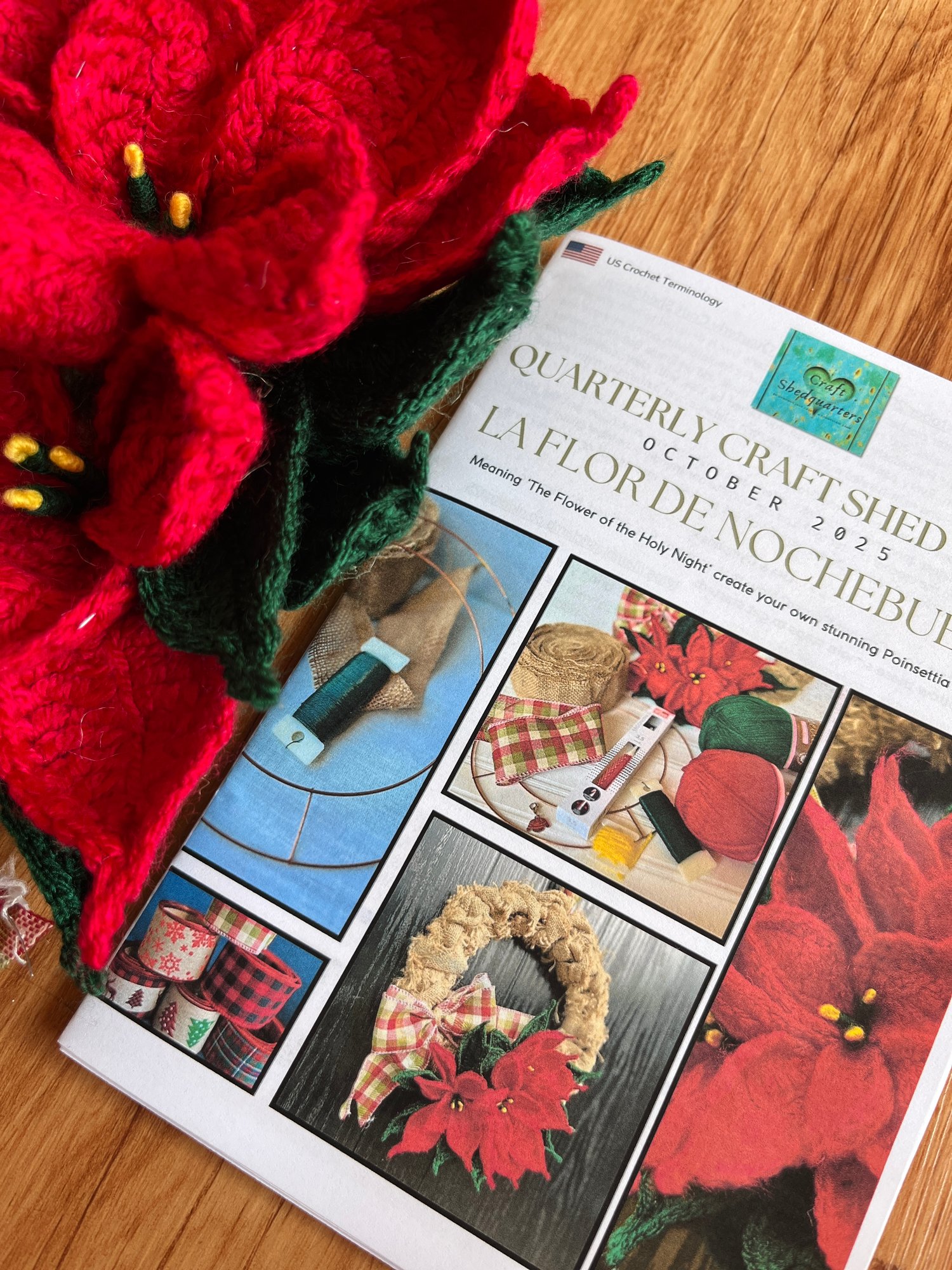 The pattern guides you through crocheting three different poinsettia flower variations, shaping leaves with florist wire, and assembling layered blooms for a full, professional finish. Clear, step-by-step instructions make it suitable for confident beginners and intermediate crocheters.