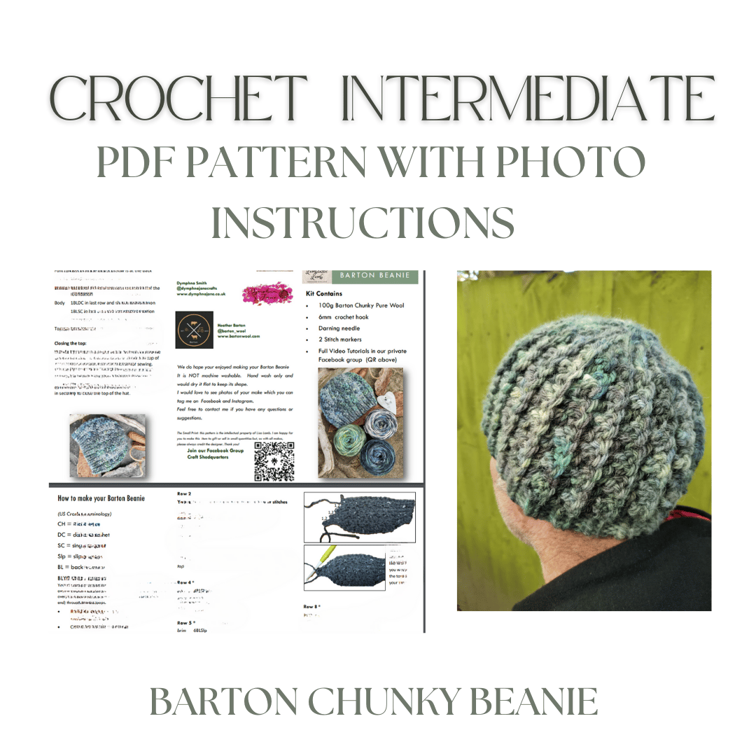 The Barton Beanie is ideal for intermediate crocheters who want to create a cosy, rustic accessory. The Sideways construction offers a snug and stylish fit, enhanced by the rich texture of natural Barton Wool, locally sourced from a Lancashire farmer. The pattern allows for easy size adjustments, and while it's designed with Barton wool in mind, it’s also compatible with Aran or chunky yarns, letting you customise the look and warmth of your beanie.