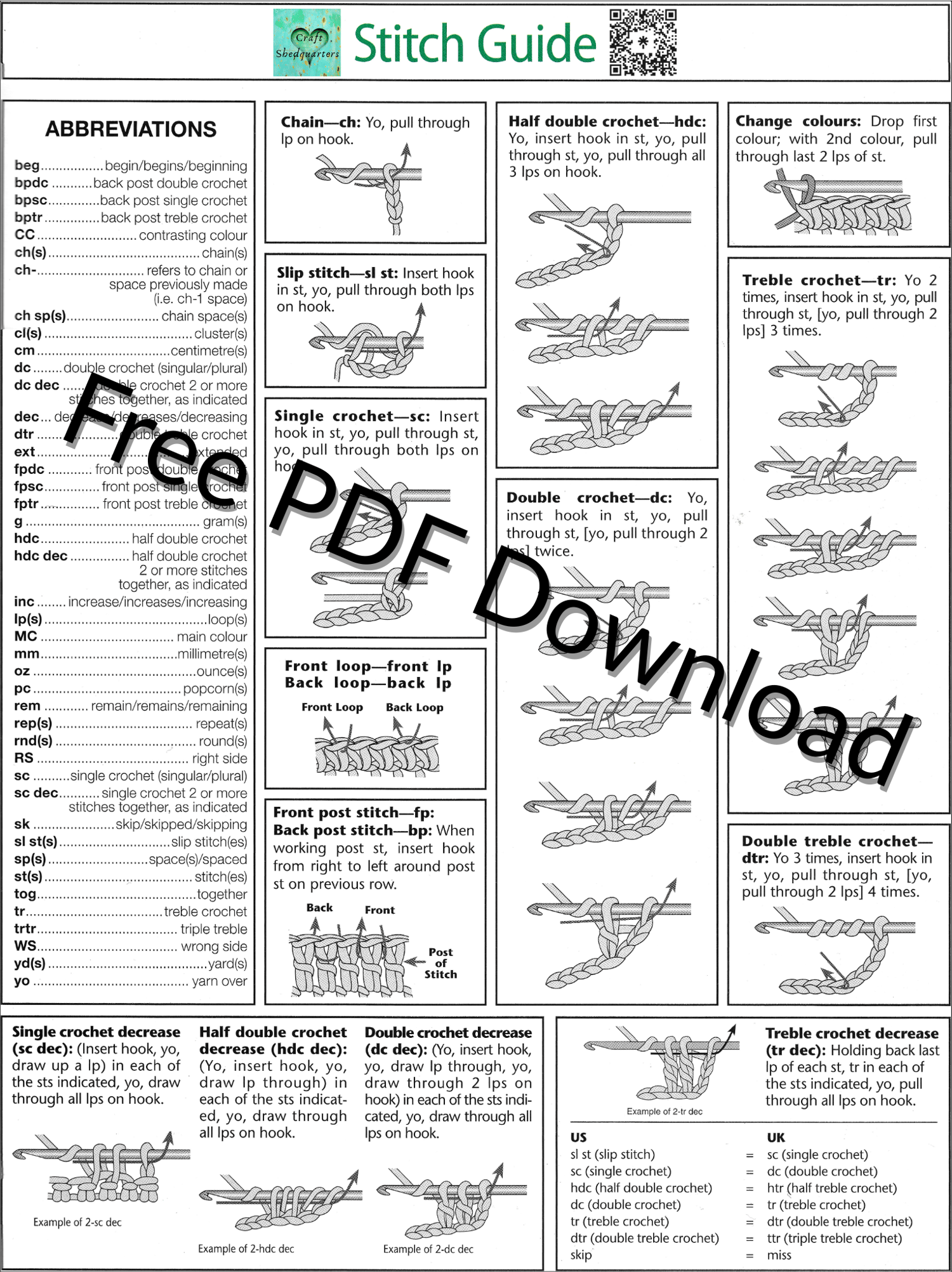 Free Illustrated Crochet Stitch Guide (US Terms)