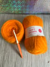 The Candy Floss scarf is pure crochet bliss. Worked in 150–200g of Sirdar Soft Down, it’s available in the sweetest pastel shades at Dymphna Jane Haberdashery, perfect for matching your favourite double knit. Using half double crochet in the third loop, this stitch gives a soft, knit-look texture that’s wearable, durable, and totally cosy.