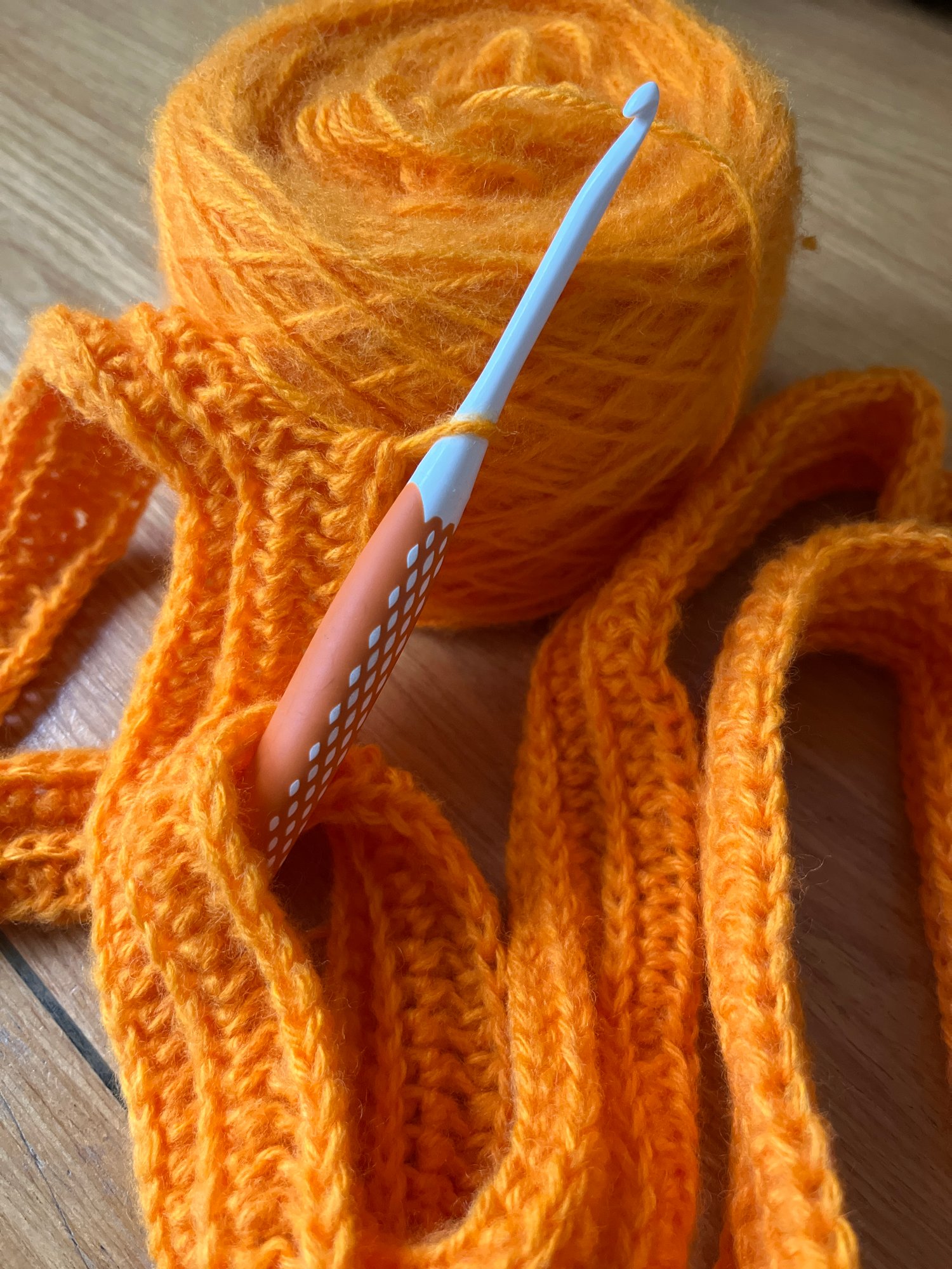 The pattern is easy to follow and relaxing, ideal for those quiet winter evenings when you just want to sit, stitch, and unwind. A handy size chart lets you customise length and width so you can make a scarf for anyone in the family – from kids to grown-ups.