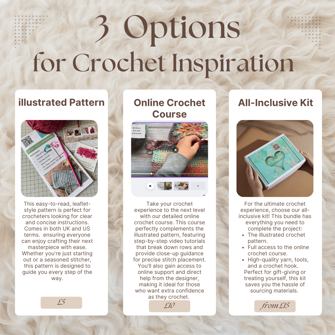 Looking for more? Upgrade your purchase to our all-inclusive kit, which provides everything you need—yarn, tools, and all. This option is ideal for those who want to jump straight into their crochet project without hunting for supplies.