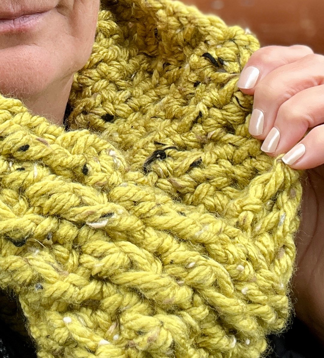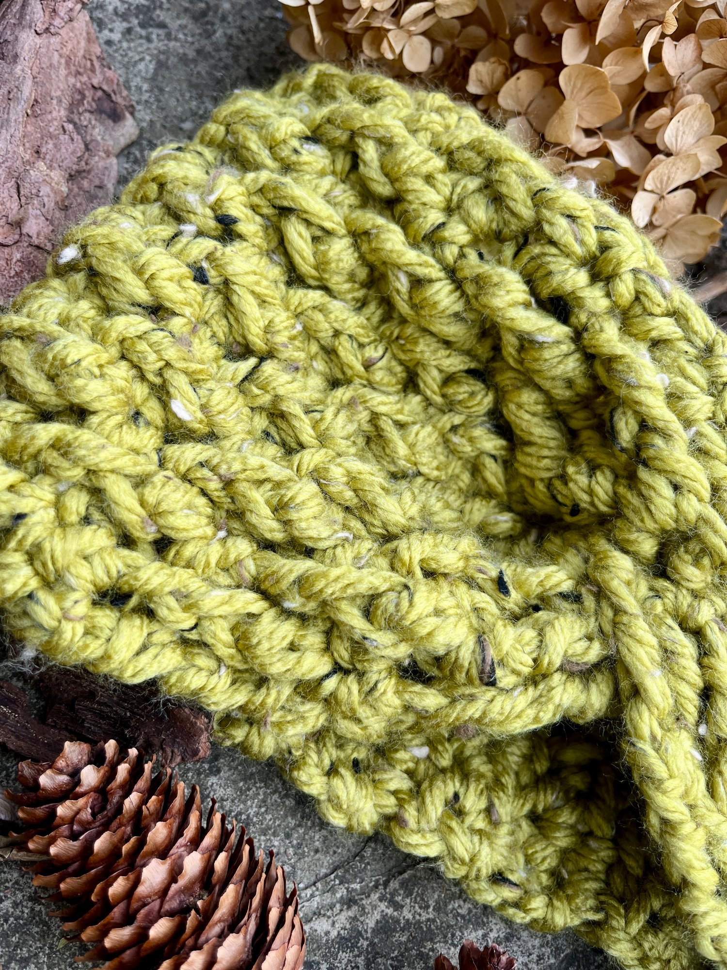 Brighten up grey days with the bold pop of Lime Tweed. This ready-made Alpine Texture Cowl is crafted from 200g of soft, super chunky, machine-washable yarn, featuring a stylish infinity twist for a modern finish.