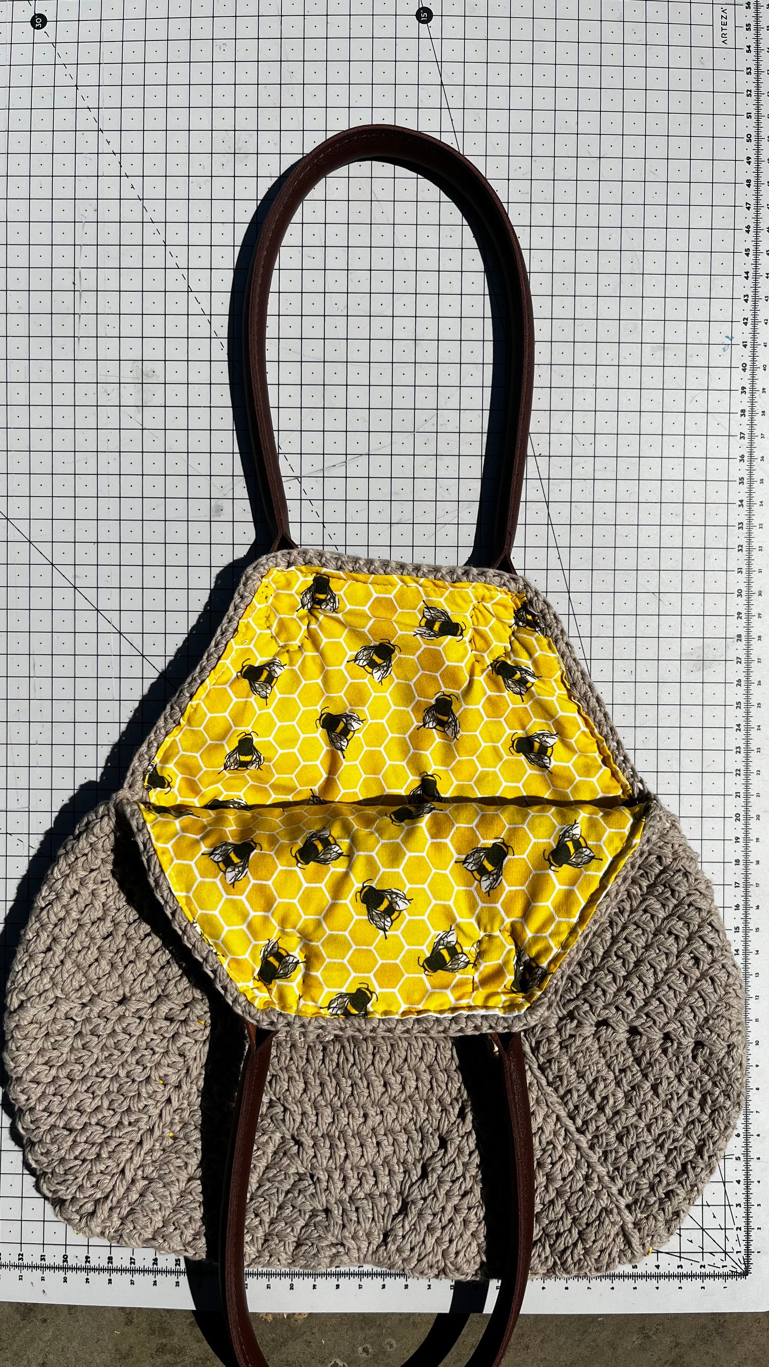 Take flight with the Honey Bee Bag! This handmade crochet creation buzzes with charm, featuring a hexagonal honeycomb-inspired design and crafted from 100% cotton for a soft, natural feel. Durable polycotton lining and sleek leatherette handles ensure both style and sturdiness, while its machine-washable material makes for easy care. Sized at 50cm by 33cm, it’s spacious enough for all your essentials and adds a touch of bee-inspired elegance to any look. Don’t bee without it!